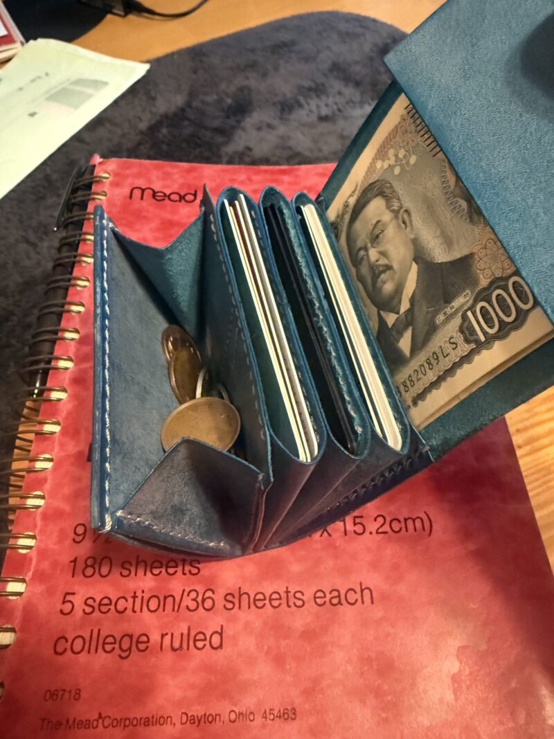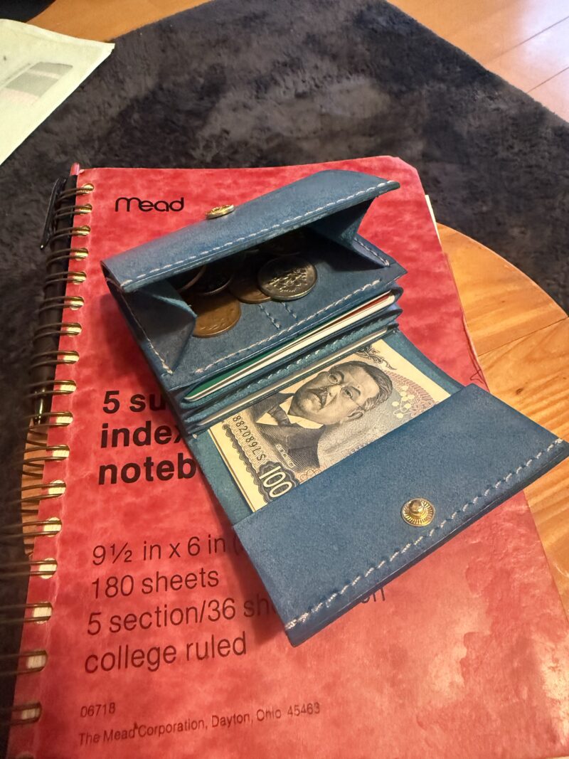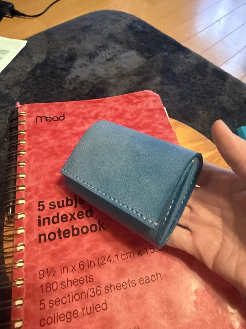 余り革とはいえ、ターコイズブルーの素敵な財布ができました。